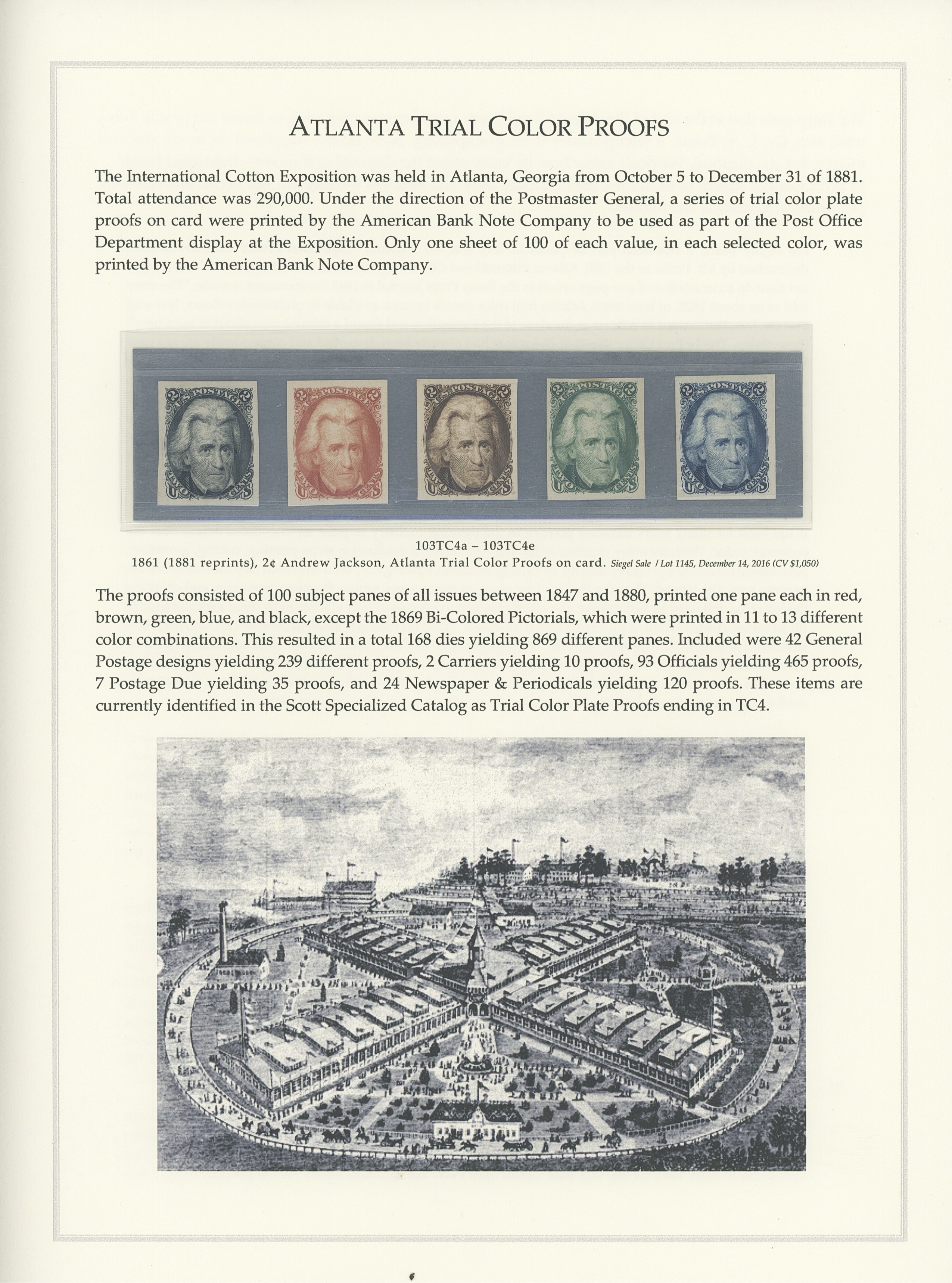Atlanta Trial Color Proofs are also quite rare at 100 issued each. They represent beautiful art in five different colors! Even now, there is uncertainty about how they arrived, but research continues to uncover their fascinating history.