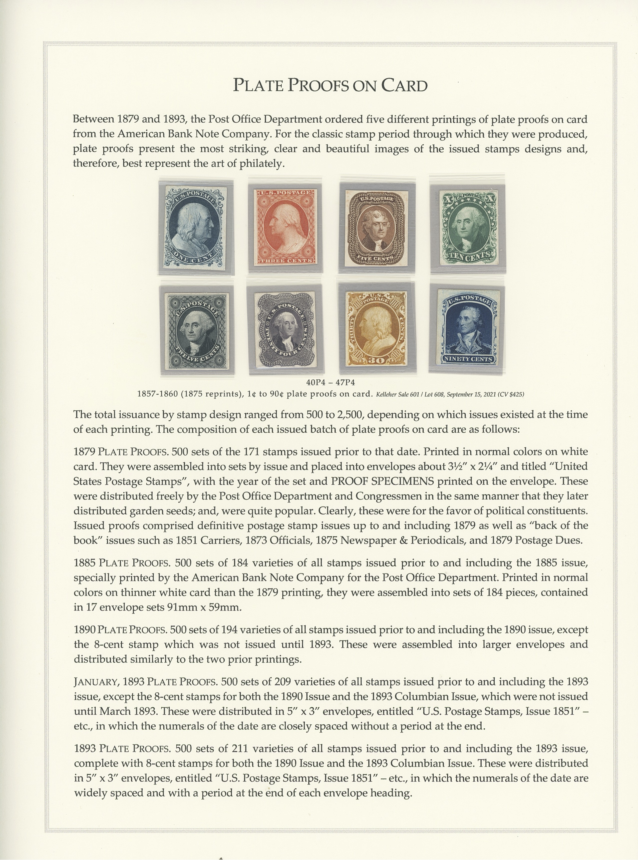 It is my belief that all types of proofs are the most interesting, rare and undervalued items in United States Classic stamp collecting. Even the plate proofs on card have only 2,500 quantities issued. While this is not rare, it is certainly much fewer than any stamp issue.